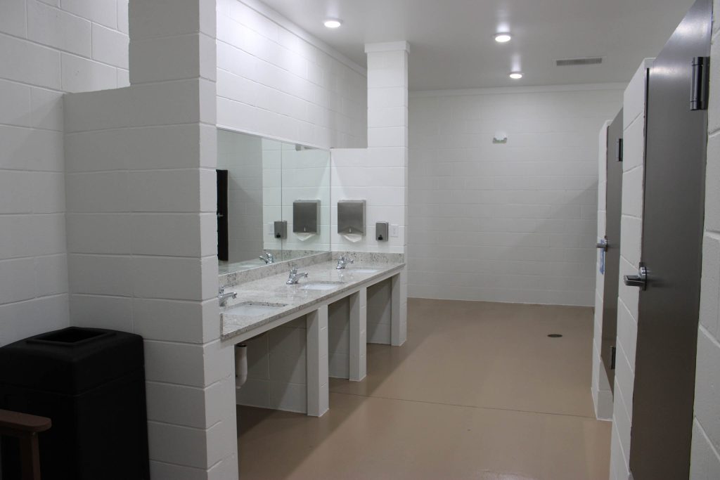 Freshen up after a long day with our clean, modern bathhouse facilities. - Coin Laundry